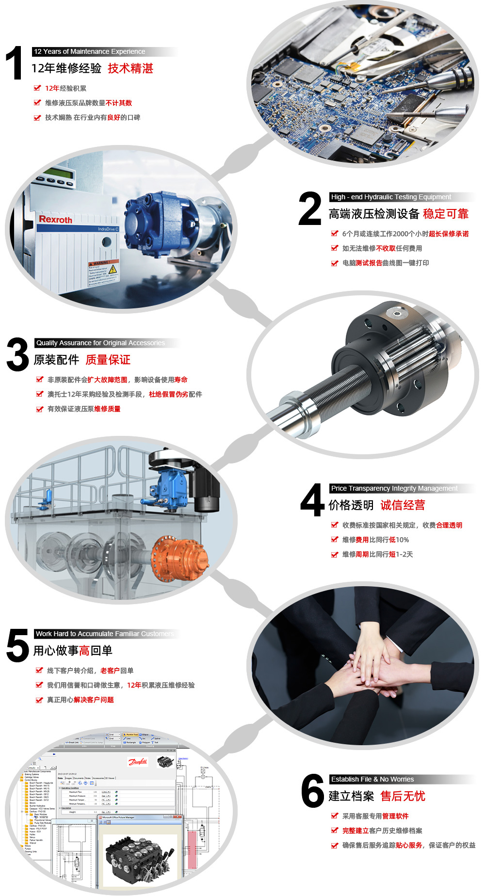 1、通過電話、傳真與我公司咨詢具體故障類型,確認該機器的維修情況與基本維修價格;2、通過我方取得快遞方式將您的液壓泵(或馬達)等快遞至我公司;3、檢測出真正故障,電話或傳真確認維修價格;4、我方開始維修流程,維修好試機正常使用通知客戶。地址:深圳市光明區(qū)公明街道上村社區(qū)蓮塘工業(yè)城B區(qū)第19棟101、第20棟 電話:0755-23197339 傳真:0755- 29859300 深圳市澳托士液壓機械有限公司 版權(quán)所有 © All rights reserved 備案號:粵ICP備16093936號-1 網(wǎng)站地圖